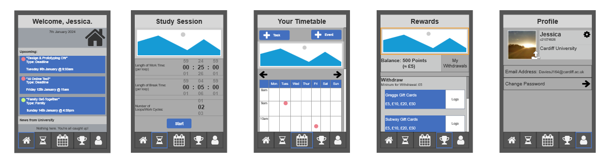 If I get any free time, I wish to develop these UI designs into a real timetabling rewards application.